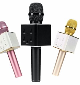 Беспроводная портативная колонка + караоке микрофон 2 в 1 Q7 - это хит 2017 года. Причин популярности данного устройства в мире много - это необыкновенная универсальность, функциональность удобство и простота его использования. Микрофон с динамиком внешне представляет из себя стандартный вокальный микрофон с кубическим модулем встроенным в рукоять. В этот модуль встроены 2 стерео динамика, а так же, панель управления функциями и звуком. Кнопка включения и ползунковые регуляторы звука удобно расположены под большим пальцем. Благодаря им вы легко и быстро сможете настроить подходящий вам уровень громкости голоса (Volume), подрегулировать высокие частоты (Treble), нижние частоты (Bass), добавить эффект эхо (Echo), подобрать громкость воспроизводимой устройством музыки (Music). Беспроводной караоке микрофон со встроенной колонкой Q7 совместим с мобильными приложениями для устройств на iOS и Android. Вы можете исполнять любимые песни подключив микрофон к своему девайсу с помощью Bluetooth или кабеля.