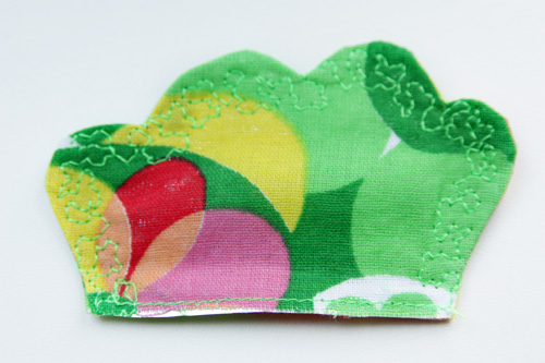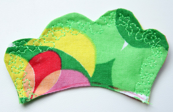 Отстрачиваем декоративной строчкой, чтобы закрепить внутри шуршащую прокладку, лишнее срезаем.