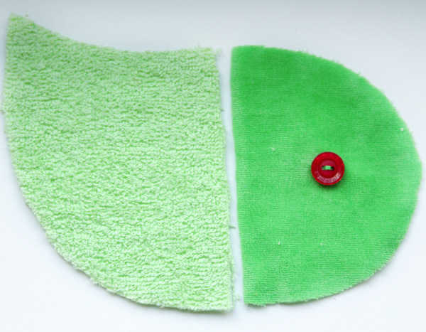 К этим деталям сразу пришиваем пуговки-глаза. С изнанки пришиваем маленькие пуговки, чтобы зафиксировать глазки надежно.