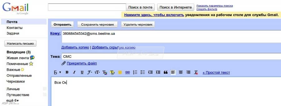 mail_to = ‘380684545342@sms.beeline.ua’ # Получатель
