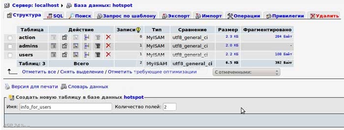 Рис.1. Создаем таблицу в базе.