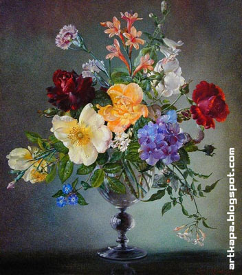 Cecil Kennedy (1905 - 1997) - английский живописец, мастер натюрморта, родился 4 февраля 1905 года в Лейтоне, в большой викторианской семье художников. Кеннеди является одним из самых известных представителей английской современной школы.В 1950—1970 годах картины Кеннеди регулярно экспонировались в лондонском Обществе изящных искусств (Fine Art Society). Художник дважды был награжден в Парижском салоне: в 1956 году серебряной медалью и в 1970 — золотой. Среди поклонников творчества Сесила Кеннеди было немало известных и влиятельных людей: герцог Виндзор, лорд Томпсон, семья Асторов. «Когда я вижу картины Сесила Кеннеди, я чувствую запах цветов и слышу гул пчел» — говорила королева Мария о работах художника. Сесил Кеннеди, безусловно, является лучшим британским художником, писавшим цветочные натюрморты в двадцатом столетии. В своей работе он часто сочетал современные гибридные экзотические цветы с традиционными английскими цветами и травами, с растениями, которые изображали на своих полотнах еще старые мастера. О цветах он знал очень много, и использование им белого цвета во многих натюрмортах отражает тенденции садоводства XX века. Картины Сесила Кеннеди можно встретить по всему миру — в королевских, корпоративных и частных коллекциях.