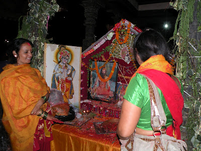 Огромная очередь в главный храм Кришны образовалась ещё с утра до восхода солнца и уже по прошестии целого дня, поздним вечером, желающих поклониться богу и принести ему свои дары - рис, сладости, молоко, цветы - всё ещё было много.