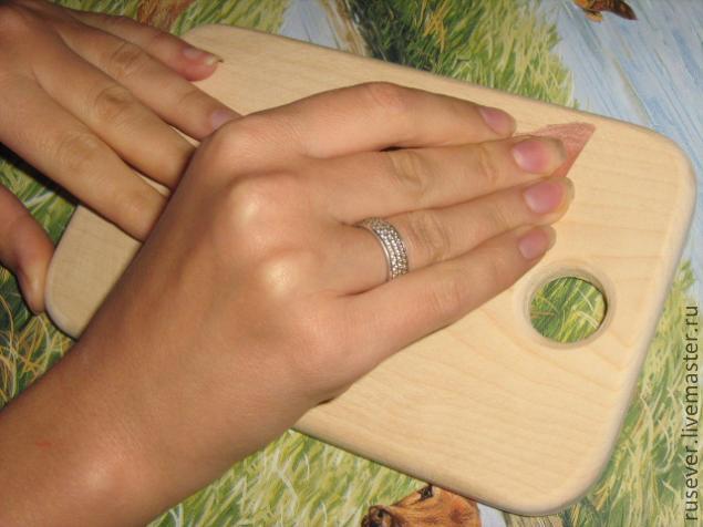 Для начала даже с виду гладкую доску нужно затереть мелкой наждачной бумагой.