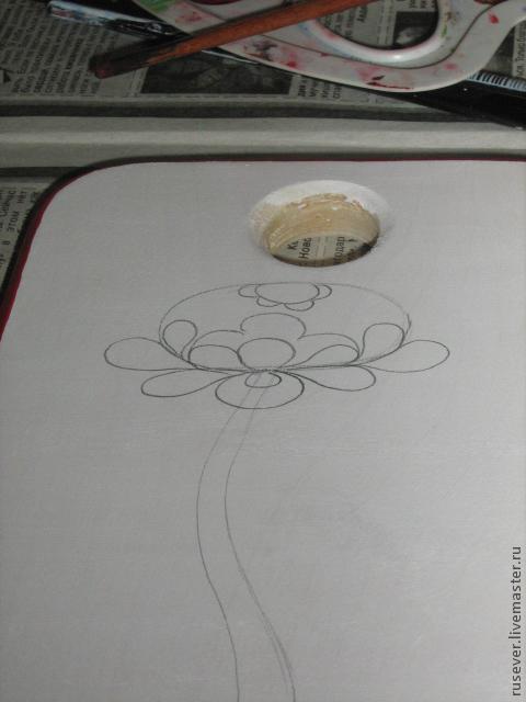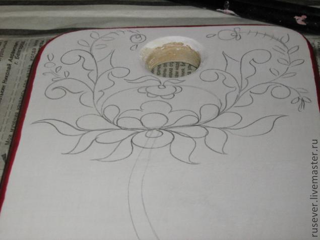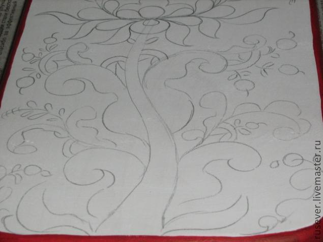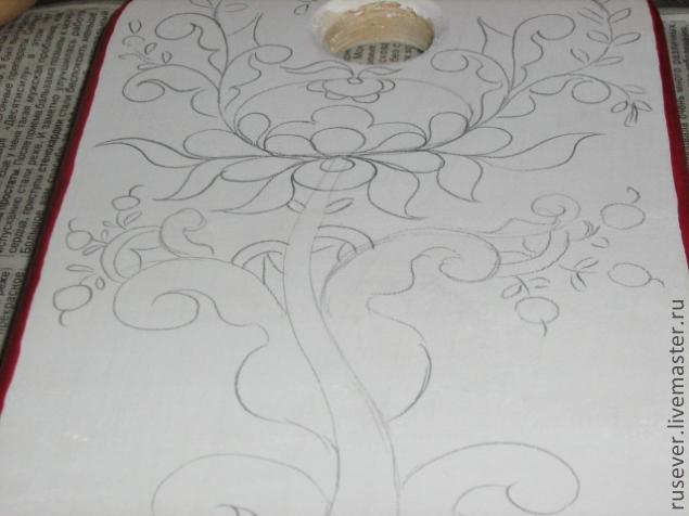 Затем наносим карандашом рисунок, начиная с верхней части древа, так называемого яблочка.