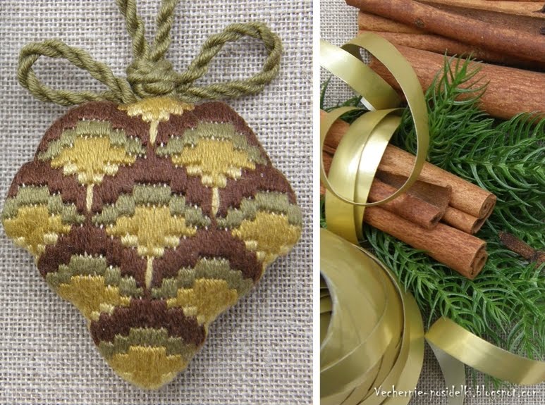 Шишка - символ здоровья, долголетия, плодородия и расцвета. Это еще раз подтверждает, что шишка обязательно должна быть на новогодней ёлке! :) А вышитая своими руками, я уверена, она будет обладать настоящей магической силой! :)