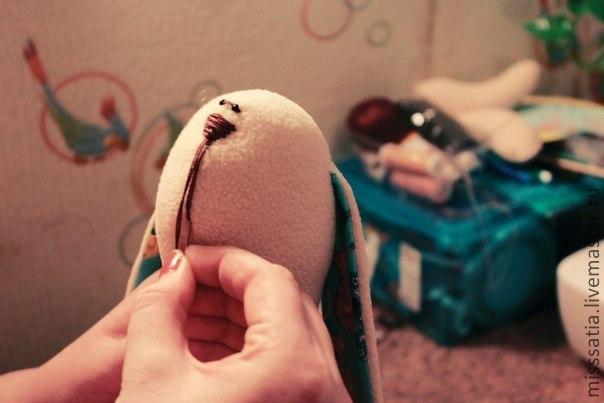 Работа кропотливая и долгая. Мне помогает МУЖ - умничка он. Говорит, что успокаивает! Хотя с чего бы ему нервничать???? Борщ на плите, жена пришла с работы, не ворчит, а шьет зайцев-кроликов ((: