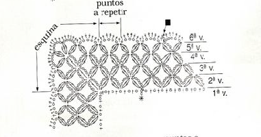 вяжем до тех пор, пока на стороне В не станет 52 столбика с накидом. По стороне А будет три зигзага - крайние вяжутся по 6 ст./ нак, а центральный по 5 ст./ нак.