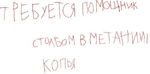 Мы – пас. Товарищ с таким неровным почерком не внушает особого доверия в части метания копья.