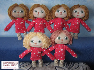 По выкройке тела, ручек, ножек, кроим одежду -- рубашки и штанишки. В учетом толщины и длины (рукава до кончиков пальцев, штанишки тоже, чтоб почти закрывали ножку. )