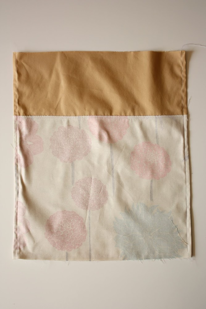Пристрочите подкладочную ткань к верхней части основной ткани. Край