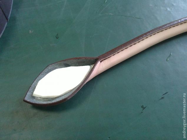 I. Окрашиваем урез, вклеиваем в концы мягкую прокладку, для придания объёма.