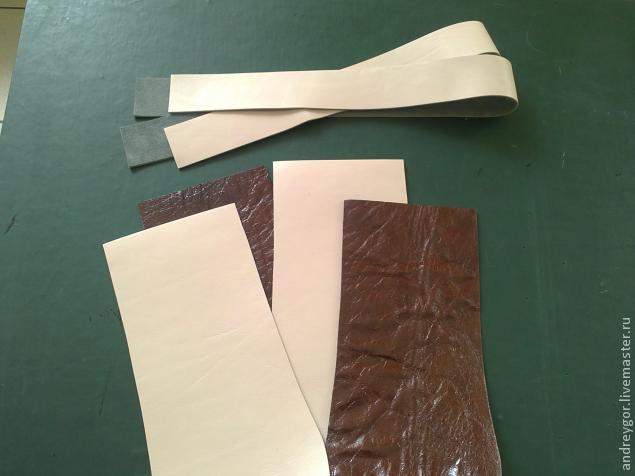 I. Склеиваем лицевые и подкладочные детали по всей площади( при необходимости дублируем тонкую кожу).