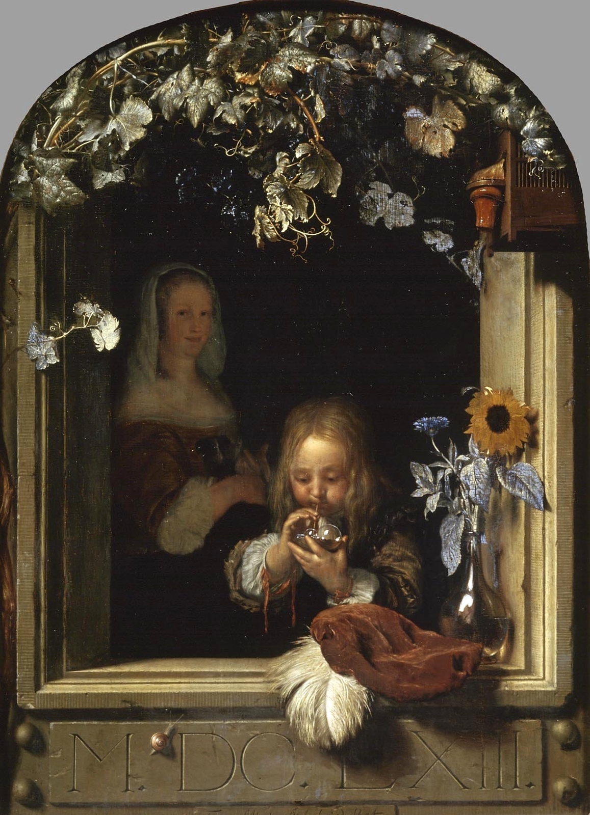 1663 Мальчик, выдывающий мыльные пузыри  Гаага, Королевская галерея Маурицхёйс1650-е Девушка продает виноград пожилой женщине  Англия, Королевская коллекция