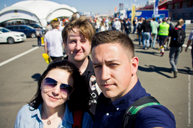 Отличное настроение было гарантировано, оставалось досмотреть квалификацию, отобедать и готовиться к гонке. Очередь за хот-догом не слишком радовала, но зато в другой очереди стоять затем не пришлось. По специальным браслетам, для подписчиков группы вКонтакте была своя очередь на автограф-сессию. Там я успел сделать несколько фотографий пилотов, которых не встретил в течение дня. Освобождая место другим желающим, достаточно быстро вышел оттуда, но очередь была очень велика, даже половина желающих не прошла. Не рассчитали. После парада пилотов мы спокойно отправились к трибуне. Было ещё время умыться, выпить пива, ведь на территории нашей трибуне оказался ресторанчик, единственная возможность спрятаться от солнца и передохнуть.