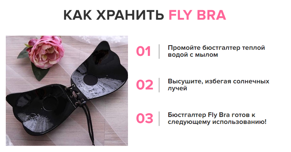 Несмотря на то, что чашечки фиксируются на груди только с помощью силиконовой прослойки, бюстгальтер очень крепко держится, не отклеивается и не сползает. Почитав реальные отзывы женщин, купивших лифчик Fly Bra, вы можете понять, насколько удобен бюстгальтер в использовании — он очень мягкий, выполнен из гипоаллергенных материалов, легко надевается, не врезается в кожу, не натирает, незаметен под одеждой, хорошо поддерживает грудь, визуально увеличивая ее в размере, к тому же стоит недорого.