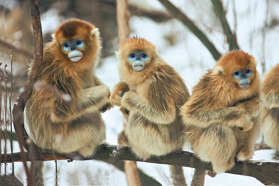 Чемпионом по очаровательности среди животных Китая, да и не только, вполне заслуженно является панда. Черно-белые мишки затмевают своим обаянием множество других, не менее достойных умиления животных. Знакомьтесь – рокселланов ринопитек (Rhinopithecus roxellana), он же золотистая курносая обезьяна, редкий обитатель горных лесов Центрального и Южного Китая.