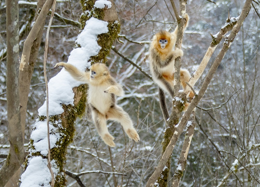Традиционные районы обитания золотистой курносой обезьяны – горные леса провинций Сычуань, Шэньси, Ганьсу и Хубэй на высоте 1500–3400 метров над уровнем моря. Это делает рокселланова ринопитека одной из самых «высокогорных» обезьян в мире! Зимой здесь лежит снег, а температура опускается до –8°C, но это совершенно не беспокоит ринопитеков. Среди всех нечеловекообразных приматов они лучше всех приспособлены к холоду.