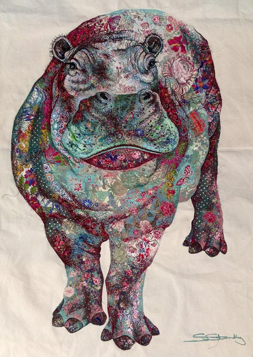 По тканевой основе, с уже нанесенным образом, Софи создает замысловатый коллаж-аппликацию, по которой потом рисует с помощью нитей и швейной машинки. На сколько все картины детализированы!! И стоили большого терпения и труда!