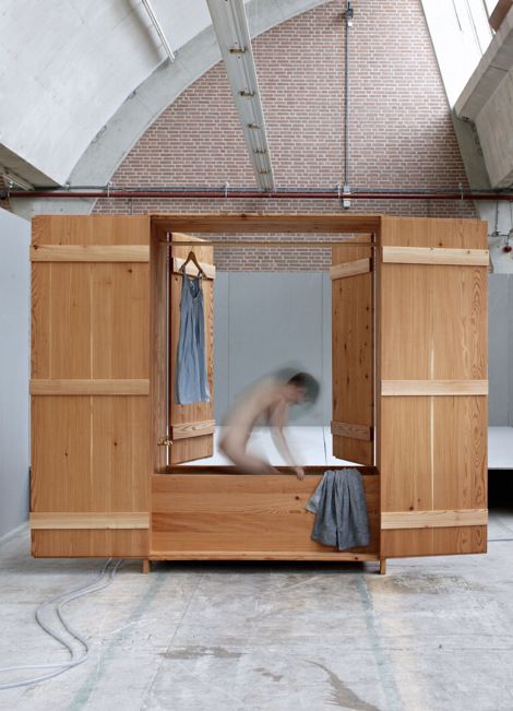Передвижная деревянная раздевалка с встроенной ванной. Дизайнер — Anna van derLei, фотографии — Rene van der Hulst, проект — BadKast.