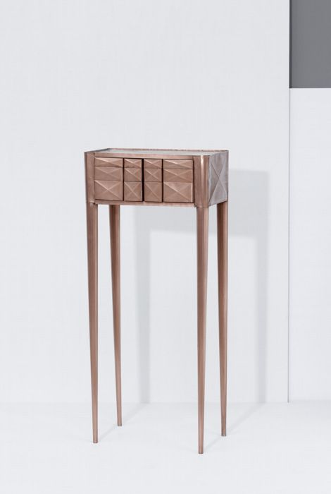Небольшой шкаф с выдвижными ящиками, сделанный из медной фольги. Дизайнер — David Derksen, фотографии — Vincent van Gurp, проект — Koperen Kabinet / Copper Cabinet.