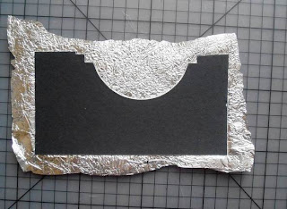 1. Наклеиваем на кусок чипборда (я использую Sizzix) смятую фольгу и ждём высыхания клея.