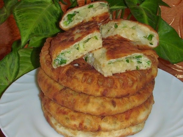 Каждый шарик раскатать ,внутрь положить 1 стол.л начинки,защипнуть(как беляши),затем с помощью скалки аккуратно раскатать.