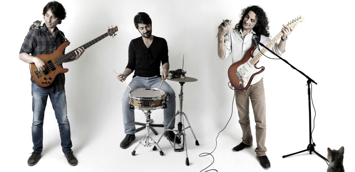 Наконец, на сцену вышла группа в составе почему-то трёх человек. Парня, который до этого тестировал микрофон по центру, почему-то не было. Запил что ли солист, вместо того, чтобы запеть? Или он сейчас ка-а-а-ак резко выскочит во время какого-нибудь гитарного соло и начнёт заливаться песней залихвастской?! Однако этого не случилось, потому что запел неожиданно худощавый парёнек (мужичок?) с гитарой, стоящий в правом углу сцены. Мы сидели через пару столов от сцены, по диагонали от него, между нами были люди, но, в принципе, сцена просматривалась неплохо. В общем, гитарист (бас, соло? не разбираюсь) запел. И тут мы обалдели. Парень пел просто великолепно. Первую песню мы офигевали, переглядывались, потом Марина начала снимать на телефон, а я сложила подбородок на руки и стала наслаждаться песнями и смотреть певцу буквально в рот. Как он это делает, стервец?! Я тоже хочу такой голос! Кому тут надо душу продать? Иногда, во время соло второго гитариста, я отводила взгляд, но, в основном, всё выступление я была просто прикована к этому волосатому поющему турку.