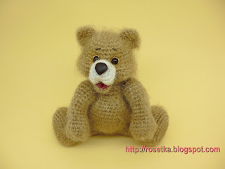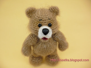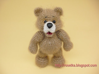 Захотелось мне связать медвежонка с толстенькими лапками, с кругленькими щечками, с животиком и непременно с ротиком. Таким он и получился