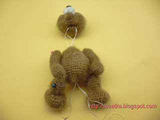 Петелька так же скроется в туловище. Подобным образом закрепляются все концы нитей при пришивании конечностей.