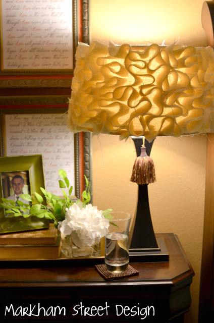 Обновляем абажур мешковиной. |
