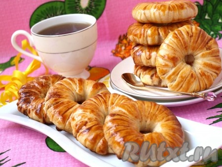 Кольца ананасов в слоёном тесте - вкусная и простая выпечка, больше похожая на десерт. При запекании колец в тесте образуется румяная корочка, а в середине остаётся сочная начинка. Выглядит такая выпечка очень красиво и замечательно подойдёт для праздничного чаепития.