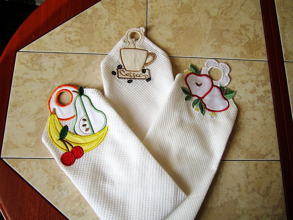 Полотенца легко стираются, практически не сминаются, хорошо впитывают влагу, кроме того, становятся великолепными украшениями кухонного интерьера.