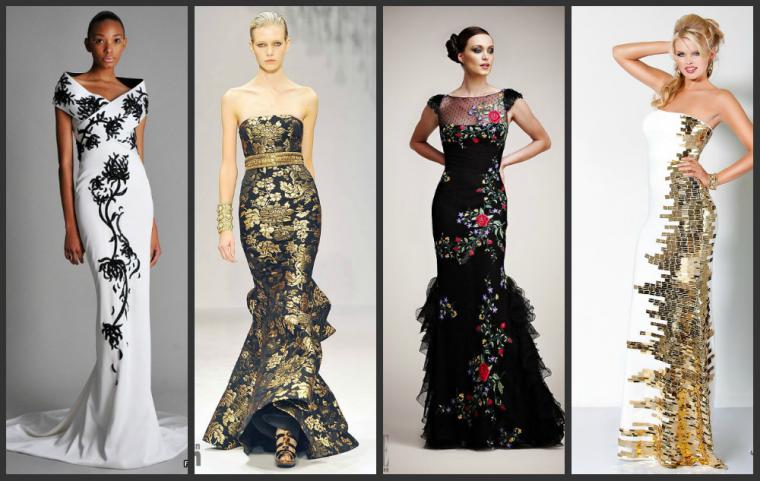 Вечерние и праздничные женские наряды не далеко ушли от свадебных по масштабу и разнообразию украшений, среди которых и наша любимица — вышивка!