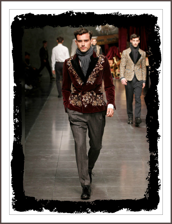 Удивило сочетание вышивки на роскошном бархате (напоминающей немного восточный стиль), с практически классическими строгими брюками и этим фривольным мягким и уютным шарфиком:) в стиле бохо. Комбинирование несочетаемого, но что удивительно: смотрится гармонично! Не правда ли?