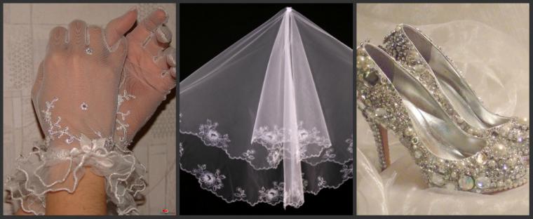 Вышивку часто можно увидеть в наряде невесты: на фате, свадебном платье, перчатках, туфельках и сумочке новобрачной.