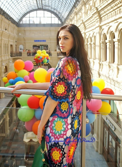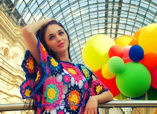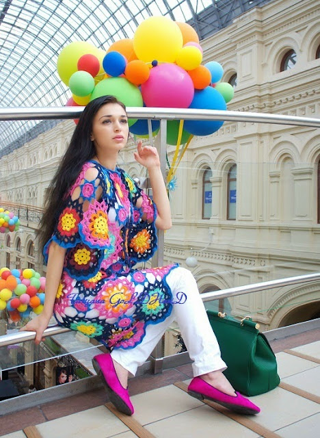 Жизнерадостная туника "Феерия цвета" - идеальное изделие для тех, кто любит быть вне серой толпы. Крупные и мелкие розетки составляют всё поле туники. Незаменимая вещь в гардеробе любителей Богемского стиля (бохо, хиппи...). Можно носить поверх однотонного городского ансамбля, поверх лёгкого длинного платья, как пляжное платье-тунику... А ещё можно сшить чехол к тунике и носить самостоятельно.