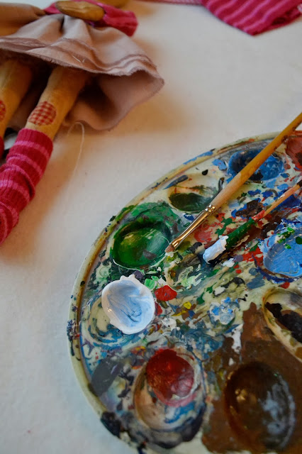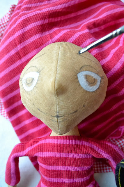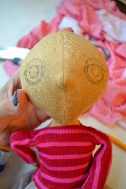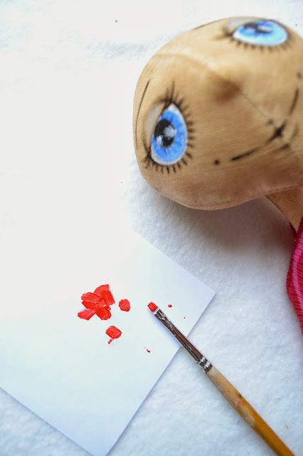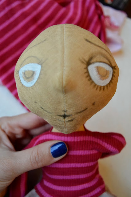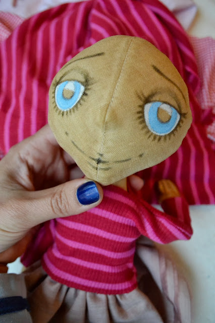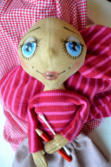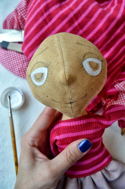 Глазки рисовать я начинаю, в основном, тогда, когда куколка уже одета или практически одета, но еще без волос), т.к. волосы, бывает, мешаю рисовать личико лезут к кисточке и цепляются за нее) Вот такой гуманоид)