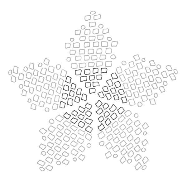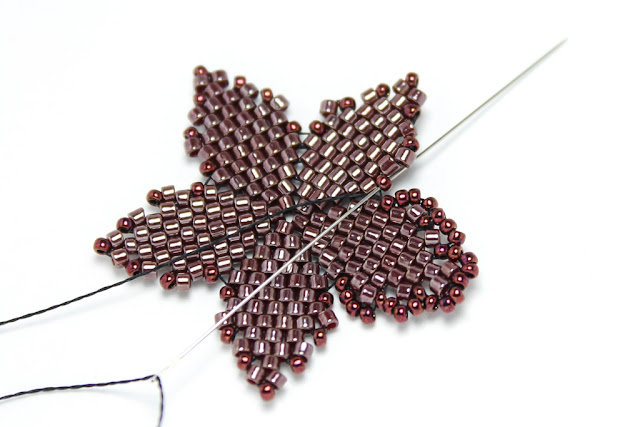 Таким образом плетем 5 лепестков. Последний лепесток соединяем с первым, сшивая первую и последнюю бисерины.