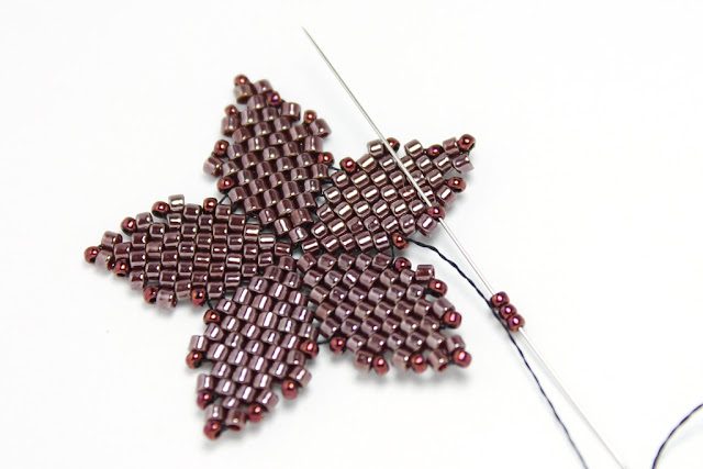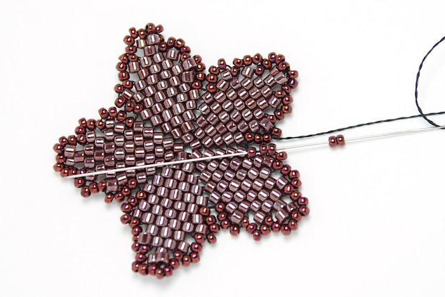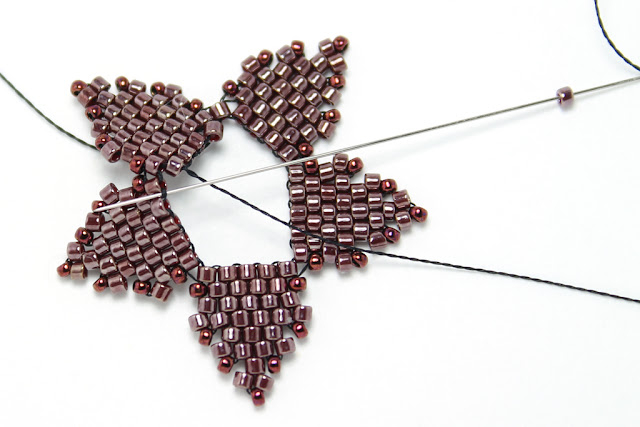 И последний ряд, пришиваем по 1 бисерине к лепестку, в ряду их будет 5.