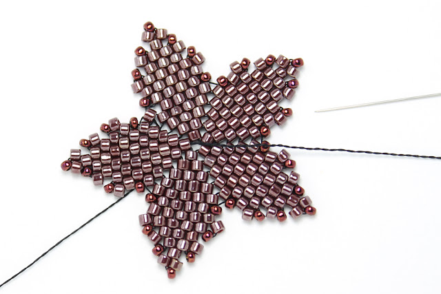 Набираем бисерины для 1го ряда второго лепестка и продолжаем плести по той же схеме.