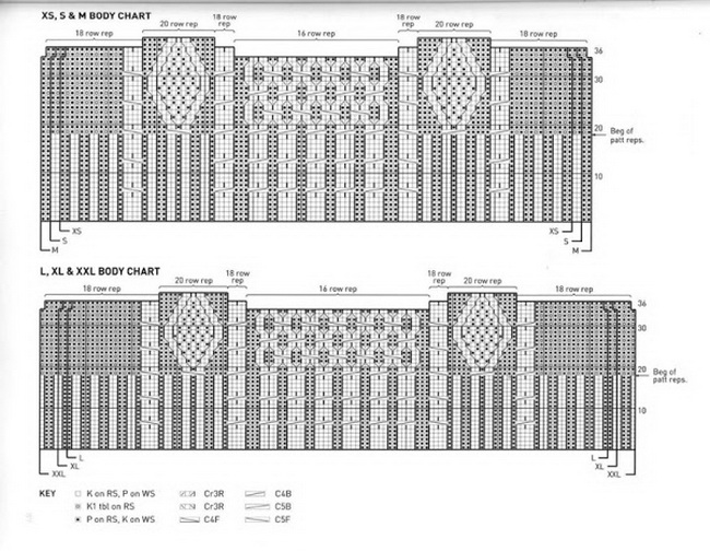 Лицевая гладь: 23,5 п. и 33 р. = 10 х 10 см;