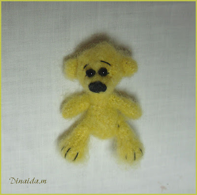 Купила неопознанную пряжу. Теперь радуюсь!) До того уютная в своей косматости... Вот первый мишка из нее родился.Остапчик. 10 см ростика. Уже нашел новый дом) Надеюсь ему там будет хорошо...