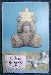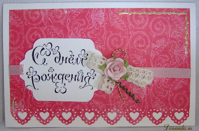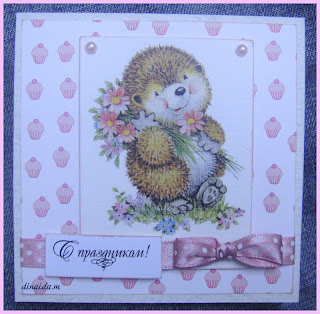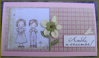 А открытка именно что торопыжка.За 10 минут сделана. Лока клеевой пистолет разогревался) Вспомнила в последний момент, что сотрудница из свадебного отпуска выходит))