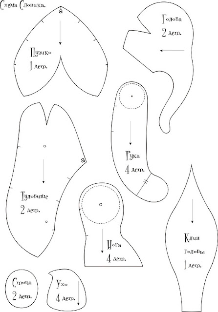 Если вы хотите, чтобы руки и ноги у куклы сгибались, то используйте эту выкройку для рук и ног.