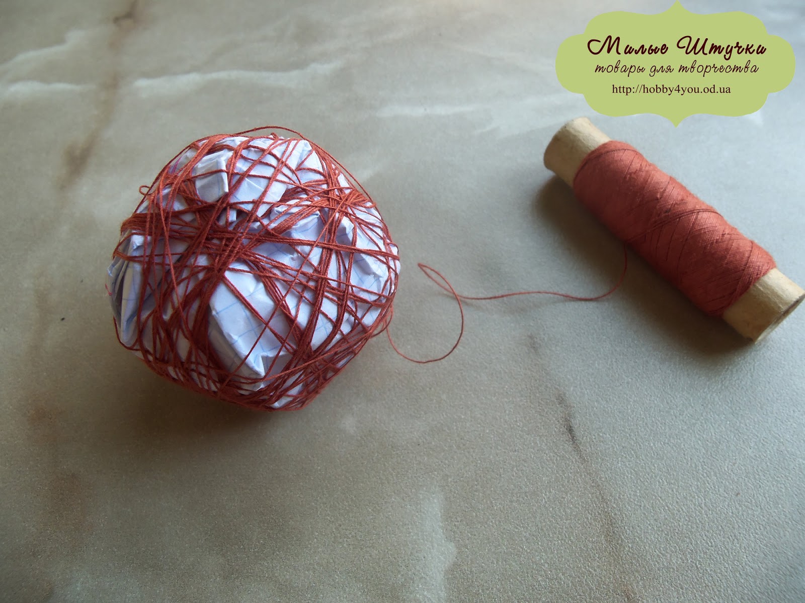 1. Из бумаги и нитки делаем шар для нашего топиария. У меня он получился примерно 5 см