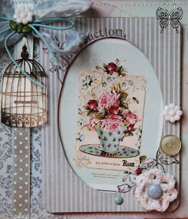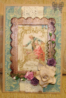 Фон  - это винтажный листик от  K&C из моего  большущего альбома, винтажные ноты, винтажная тесьма,  цветы и карточка, которую я просто распечатала...