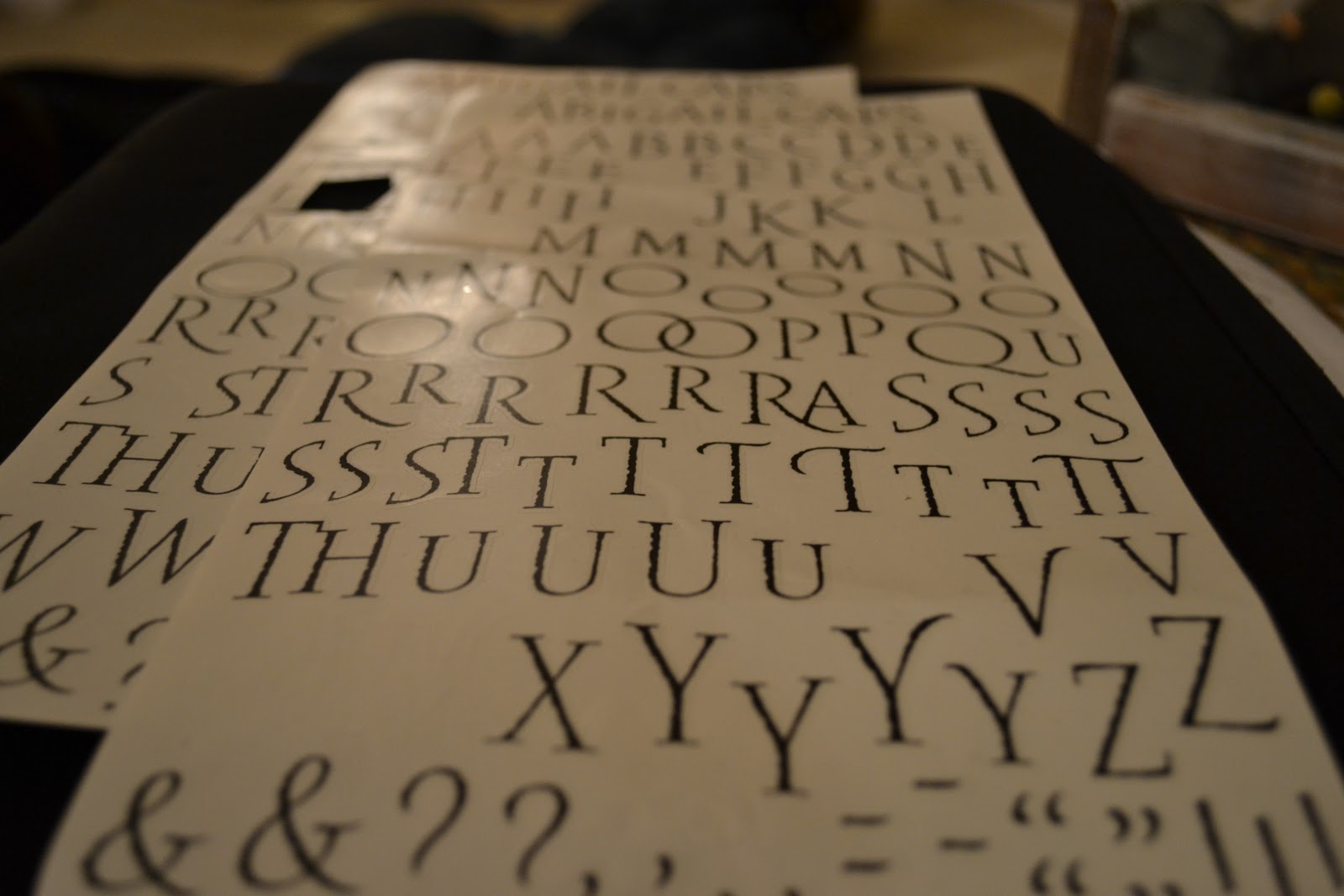 Приложив изображение надписей с обратной стороны холста и подсветив, автор переносит надписи на работу