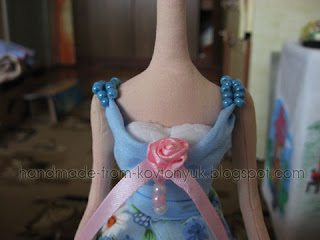 Середину рулончика также стягиваю ниткой, пришиваю «грудь» к телу. Вот мы уже и почти одеты ))