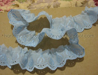 Замеряем весь край юбки, по которому будет идти кружево. У меня получилось что-то около 1,15 метра. Умножаем эту длину на 1,5. Если хотите более густое кружево, умножайте на 2. Кружево присбориваем.